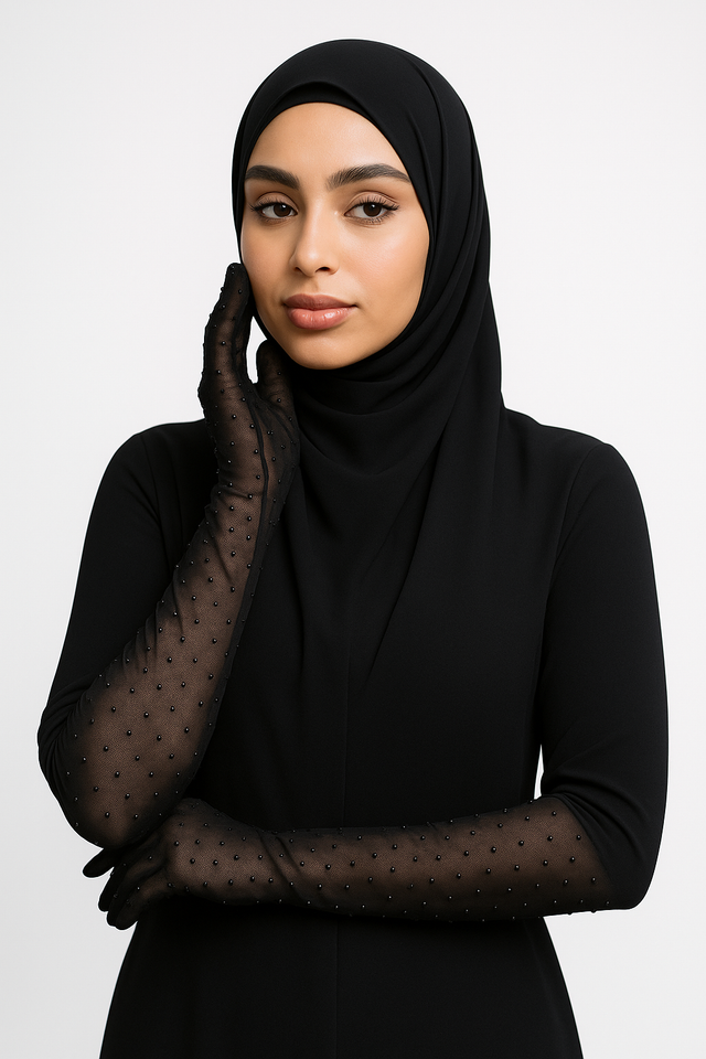أكمام مرصعة بأحجار الراين السوداء للنساء