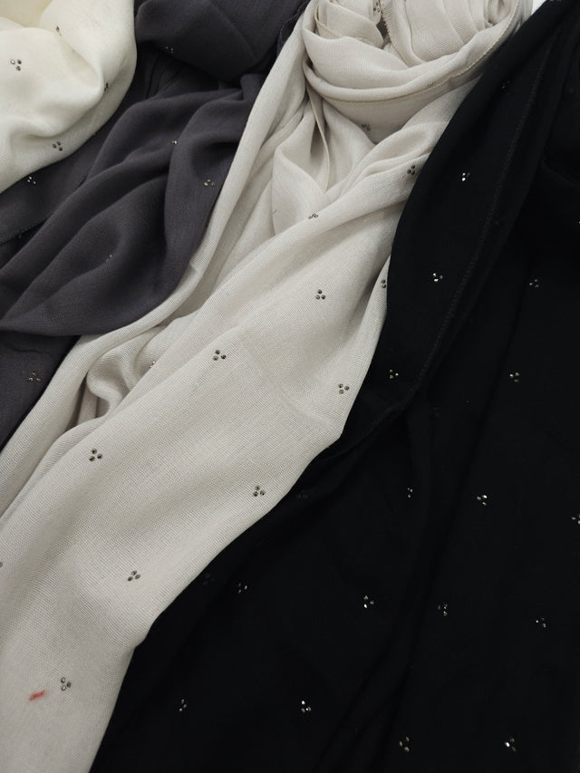 نقدم لكم شالات ملكية مميزة بكريستالات شاتون لمنحك تألق إلكترونيا ملكيا. حجمها المثالي 170 × 70 سم يوفر لك راحة واسيابية لا مثيل لها.