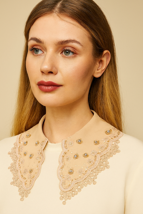 طوق ديكي مطرز | أبيض | تصميم الفراشة